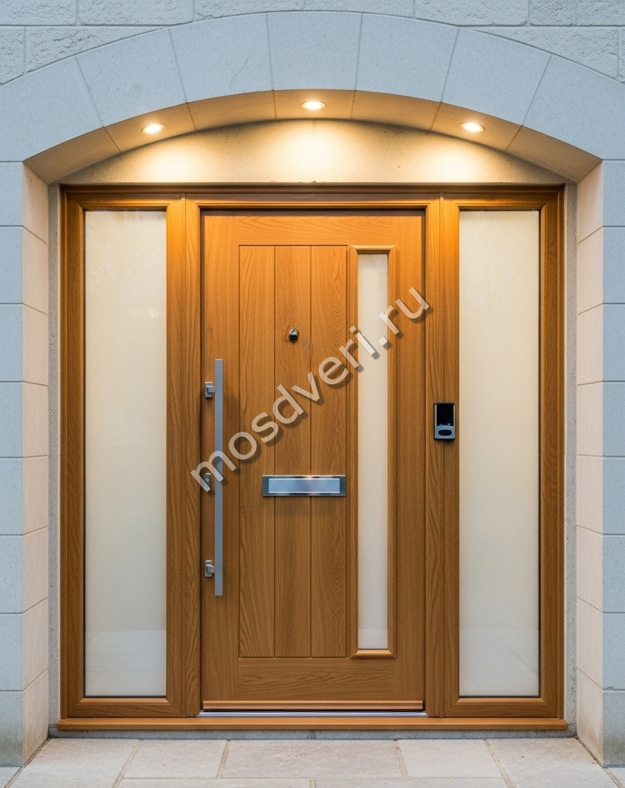 Большая входная дверь в частный дом коричневая со стеклом — сочетает в себе эстетичность и максимальную защиту.