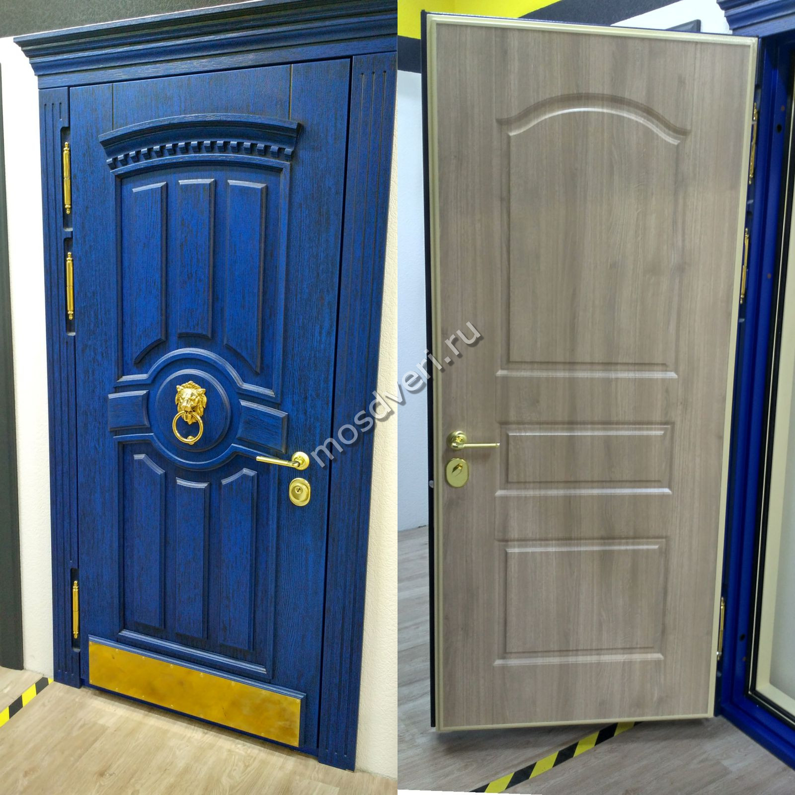 Элитная входная дверь синего цвета глухая — совмещает стильный внешний вид и максимальную защиту.