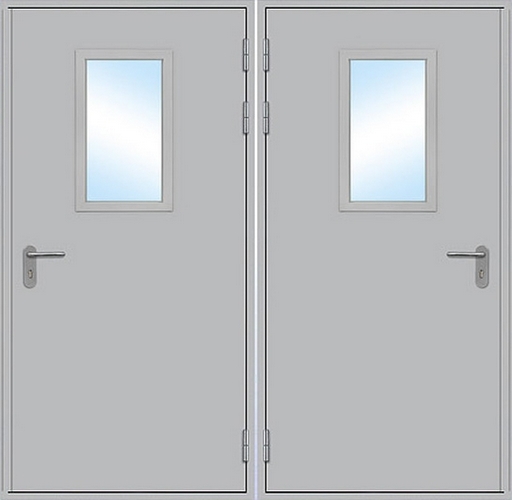 Противопожарная дверь серого цвета с прямоугольным стеклом в Пушкино