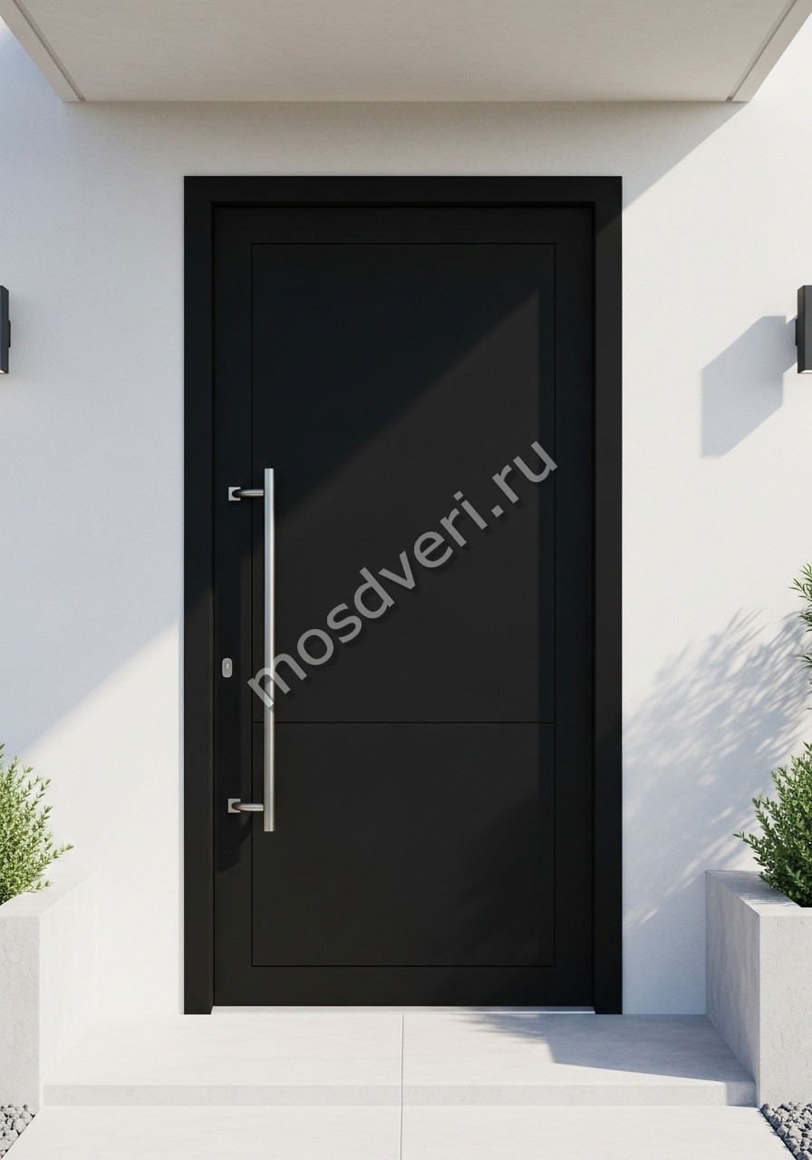 Широкая входная дверь для дома черная — совмещает стильный внешний вид и высокую надёжность.