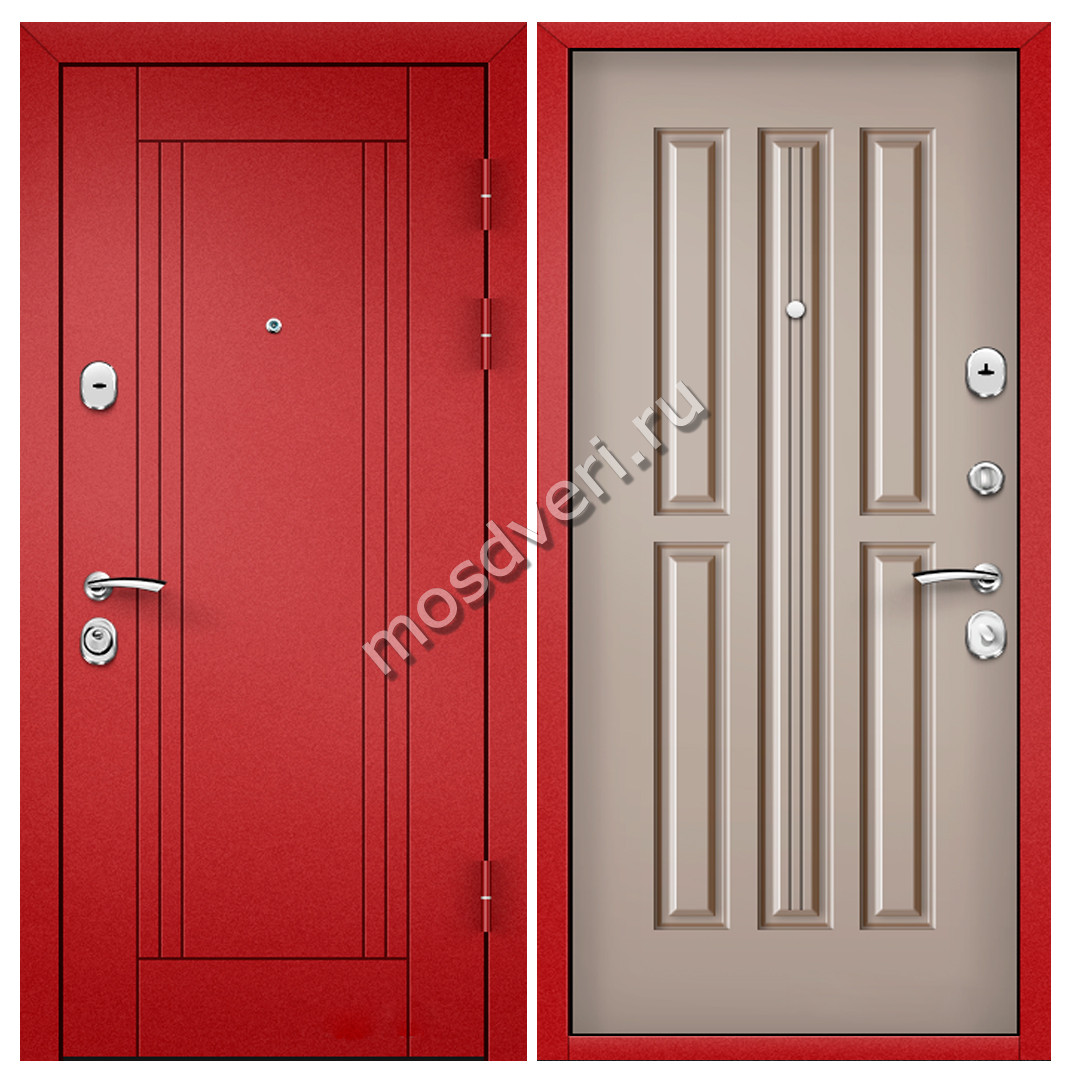 Красная входная дверь в квартиру KVD-12 — объединяет эстетичность и превосходные защитные характеристики.