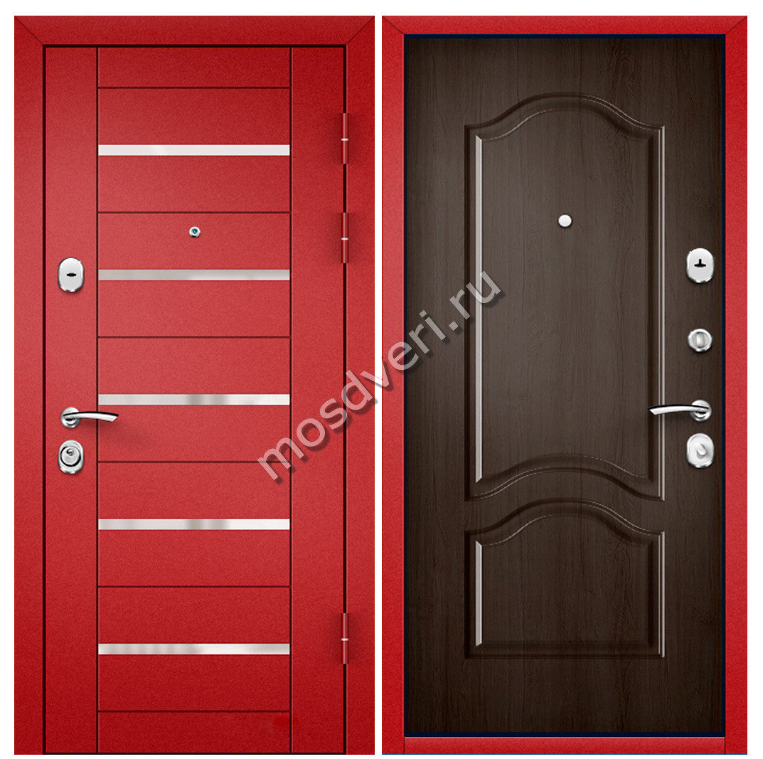 Красная входная дверь в квартиру KVD-17 — купите уже сегодня! Позвоните нам, и получите бесплатную консультацию уже сегодня. Выезд специалиста — по вашему графику!